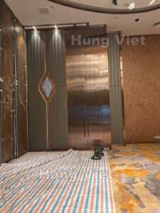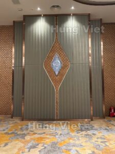 - Ốp tường, vách ngăn CNC: Sử dụng tấm inox sóng nước hoặc inox mạ PVD (vàng, đồng, đen) để tạo điểm nhấn sang trọng cho sảnh chờ, hành lang, hoặc các khu vực VIP.